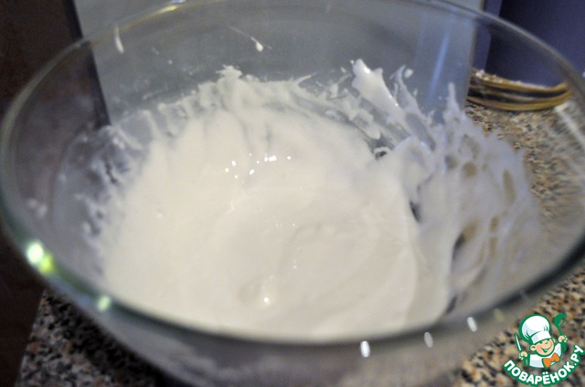 Когда все детали готовы, приготовим глазурь для украшения. Внимание! Так как глазурь быстро высыхает и я буду ждать полного её высыхания на деталях и при сборке дома, то глазурь делаю в три приема. Первый раз из одного белка, 5-ти капель лимонного сока и 60-ти грамм белого сахара.
