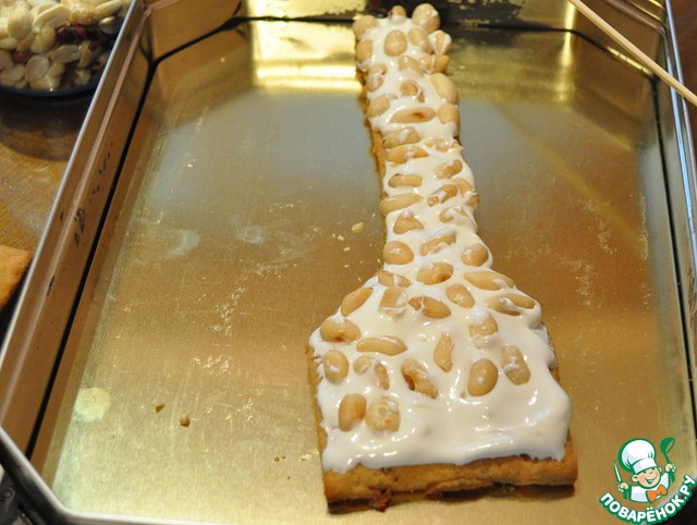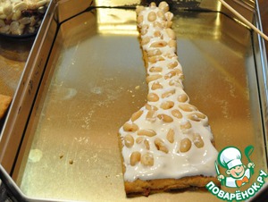 Трубу покрыть глазурью и выложить орехами. Просушить, чтобы глазурь с орехами не стекла.