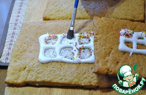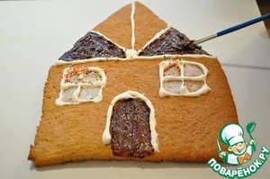 После высыхания глазури, закрашиваем стекла в окошках серебристым пищевым кармином.