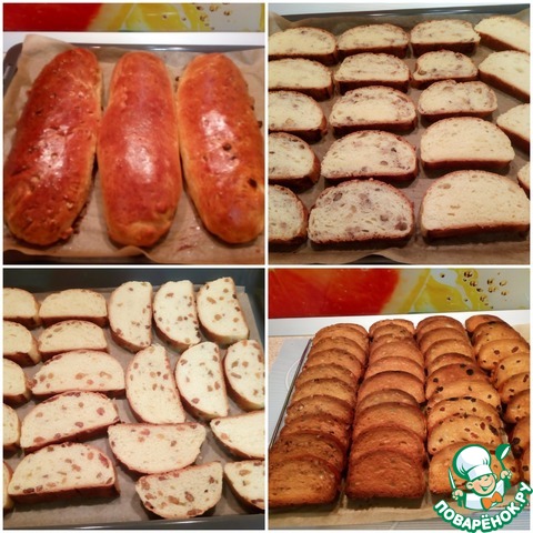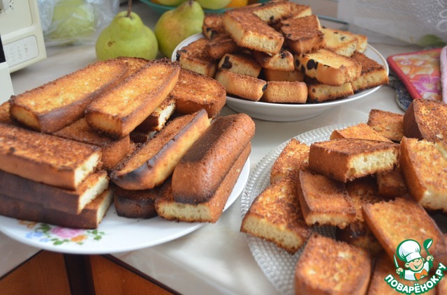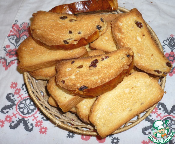 Помните ли Вы вкус сухарей, которые продавались в советские 70-80-е годы? Они пеклись из дрожжевого теста, тогда еще из нормальной муки, без улучшителей, консервантов и других вредных добавок, которые современные производители добавляют в свои изделия. Они назывались «Сухари городские». Изредка встречались сухари с изюмом, а еще реже дефицитные – с орехами. Это были очень вкусные сухарики моего детства. И я предлагаю испечь их дома по рецептуре советских времен! Это – нечто! Это – что-то! Это – просто супер-класс! Потому что угощаю Я сухариками Вас! Без вредителей-добавок, Без обмана, - все как встарь! – Мы отведаем на завтрак Советский городской сухарь! Мы сгущёночкой намажем Наш сухарик в полный рост. Современникам покажем, Каким был советский ГОСТ! Можно с джемом натуральным, Ну, а можно просто так Кушать с соком, кофе, чаем! Всё равно получим СМАК!!! Итак, готовим вкусные, ароматные, хрустящие, натуральные СОВЕТСКИЕ СУХАРИ!
