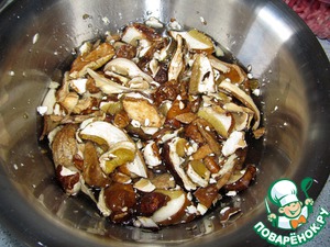 Первым делом, заливаем сушеные белые грибы теплой водой минут на 20-30.