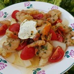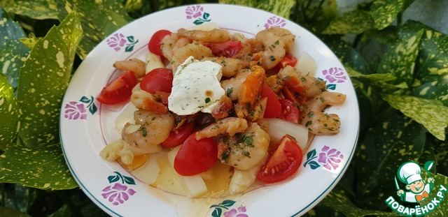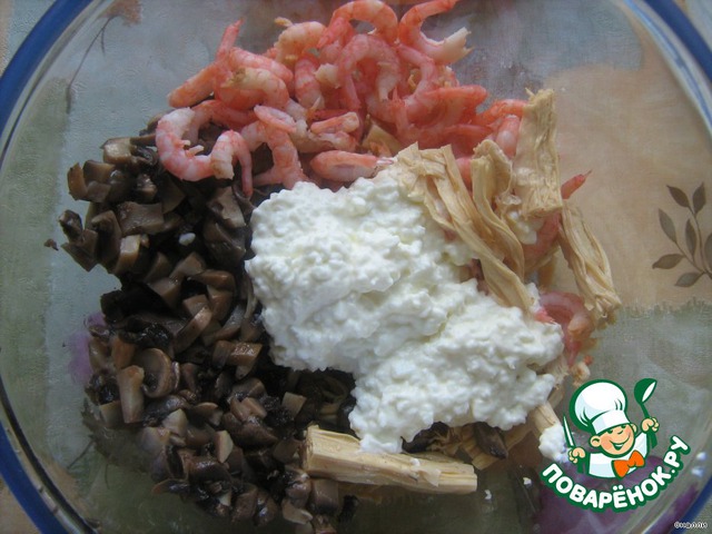 Соединить спаржу, грибы креветки, можно к этим продуктам сразу добавить и помидоры, но я их оставила на украшение. -