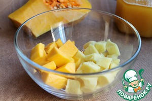 Тыкву и имбирь очистить и нарезать кусочками для дальнейшего измельчения блендером. Если вы не любите островатый привкус имбиря, тогда на такое количество ингредиентов понадобится только 1/2 корня имбиря, а то и меньше, но обязательно рекомендую его добавлять, хоть немного.