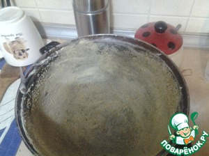 Чугунный казанок смазать холодным сливочным маслом и присыпать панировочными сухарями.