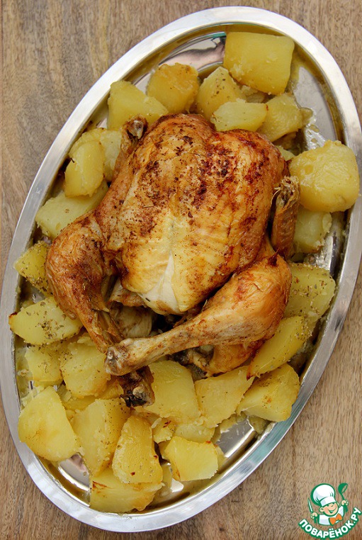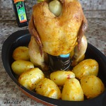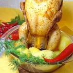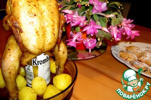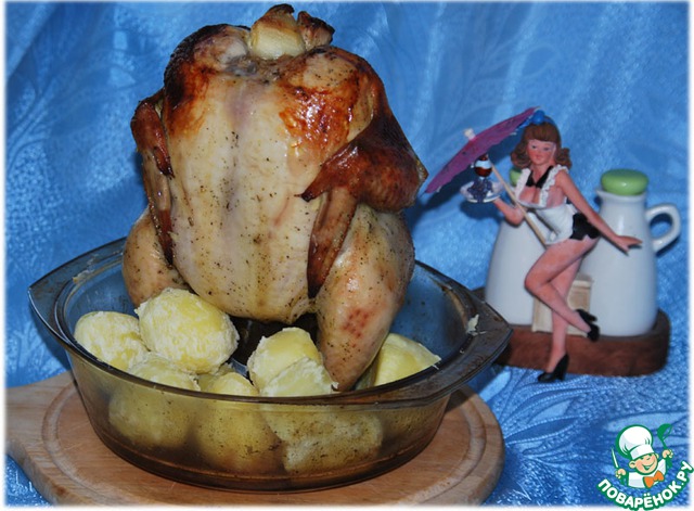 Обещанный цыпленок для Оли Бабич, а то у них уток не продают... :) рецепт увидела в рекламке магазина, посмеялась сначала, но решила приготовить... Ооо!!! это было.. ммм... потрясающе! сочное, нежное мясо, даже грудка нежнейшая. Попробуйте просто ради интереса, уверена, захотите повторить :)