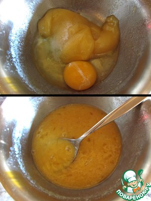 Яйцо, соль и мед смешать, вылить в муку