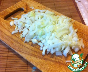 Лук мелко порезать и обжарить в масле до прозрачности.