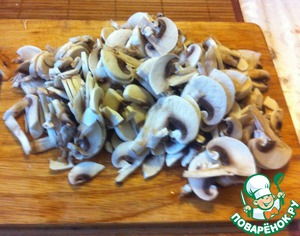 - Грибы (шампиньоны, но можно опята, также очень вкусно получается с белыми грибами) — 12-14 шт