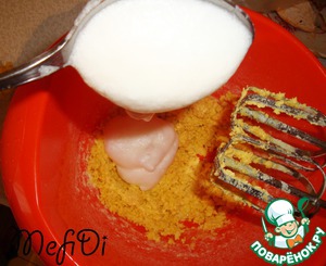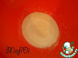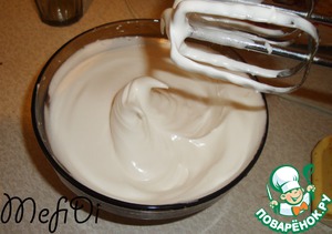 3 белка взбиваем со 100 гр сахара, чтобы получалась густая масса.