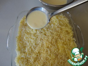 Взбиваем венчиком 2 яйца с 1,5 стак. молока и заливаем всю поверхность нашей запеканки.