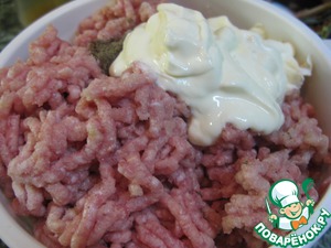 Из фарша делаем лепёшечку, в центр кладём яичко.