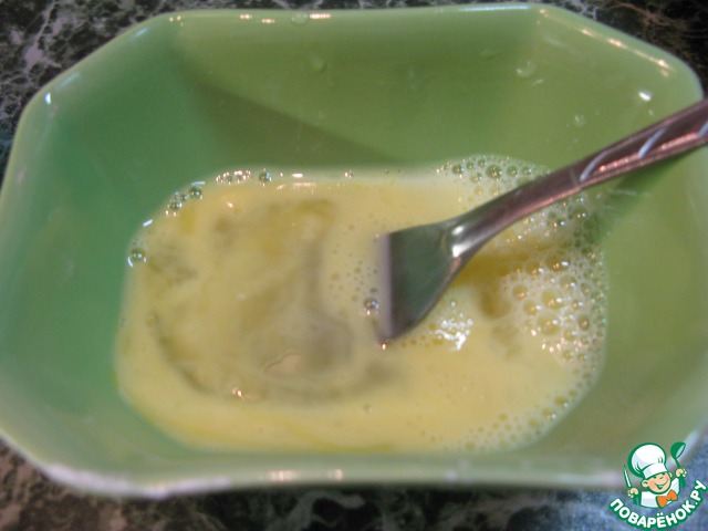 Яйцо взбить вилкой с 1 ч. л. воды.