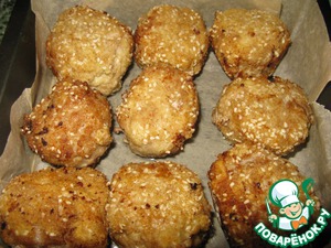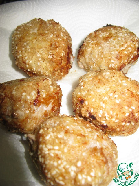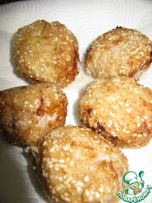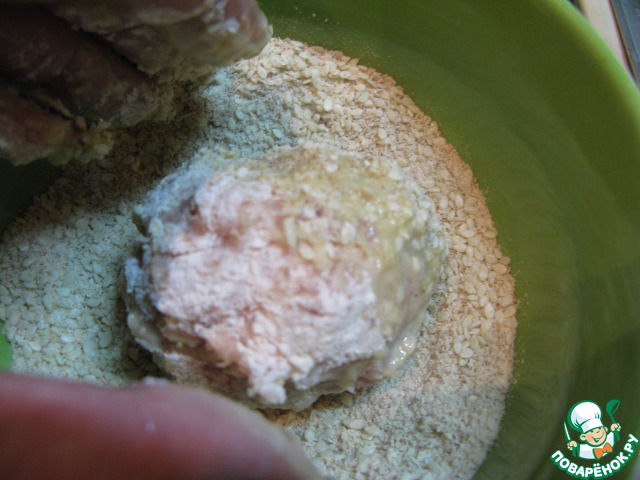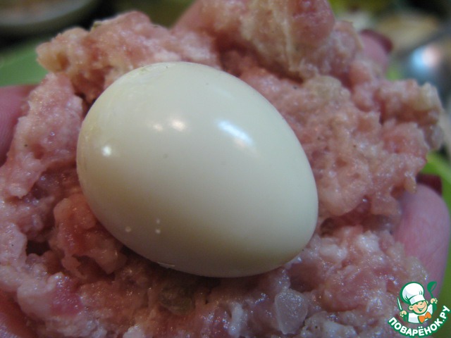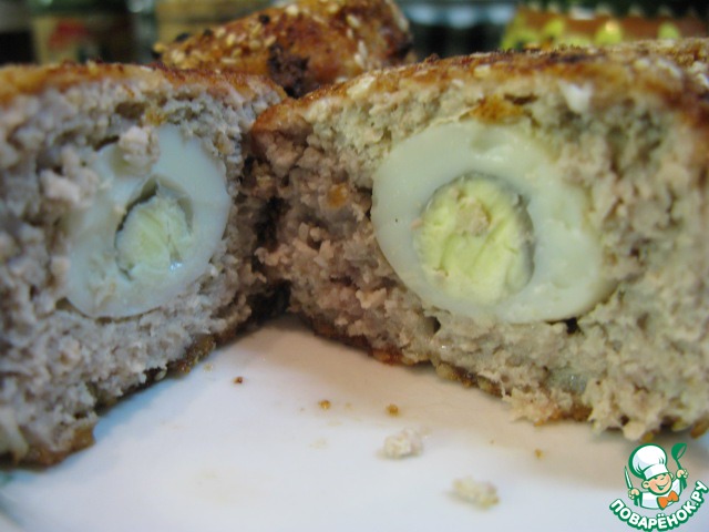 За основу взяла яйца по-шотландски. Изменила фарш, панировку, и получились котлетки " с сюрпризом". Очень вкусно и необычно.