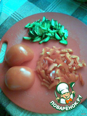 Огурец, перец и помидор режем мелко и добавляем в капусту.