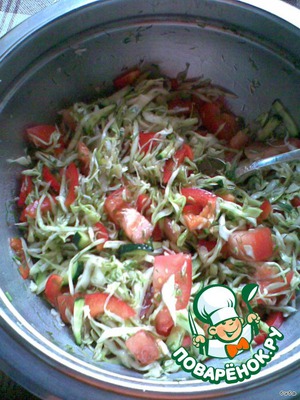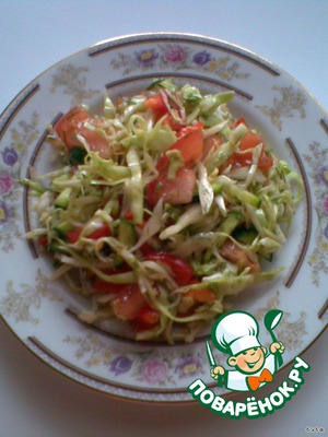 Этот салат хорош как на гарнир, так и как самостоятельное блюдо. Его лучше готовить из молодой капусты, но можно и из осенней, только ее необходимо посильнее обмять. Попробуйте, думаю, Вам понравится.