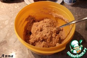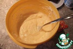 Добавить муку с разрыхлителем и замесить мягкое тесто.