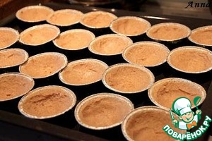 Приготовить заливку: для этого смешать сметану, яйцо и сахар, постепенно всыпать муку и размешать до однородного состояния, чтобы не было комочков. Залить заливку в формочки. Выпекать при 180 градусах в маленьких формочках 30-35 минут.