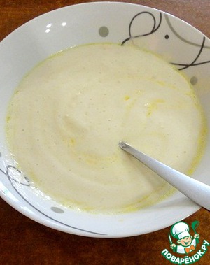Желтки взбить венчиком, смешать с оставшимся теплым молоком, добавить опару и растопленное, но слегка остывшее сливочное масло.