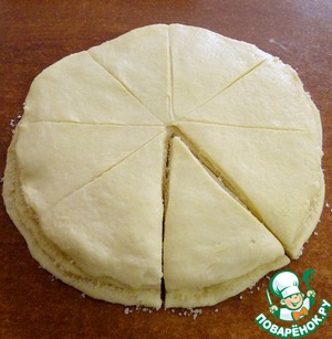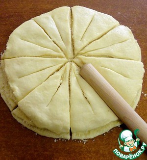 Мы проходим этой скалкой по разрезанным сегментам(треугольничкам),чтобы при выпечке они не склеились.
