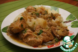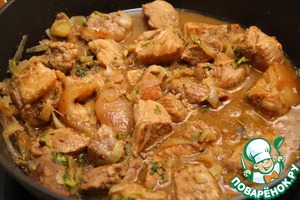 Добавьте к мясу обжаренный лук и потушите еще 15-30 минут.