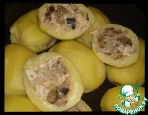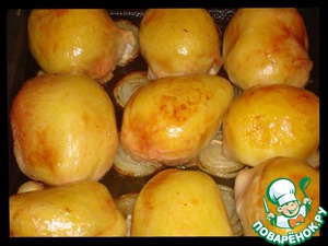 Картофель, фаршированный грибами и запечённый в куриной кожице.