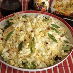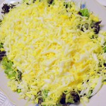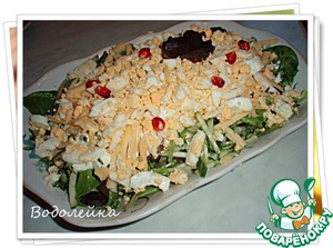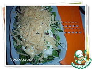 Сыр натираем на крупной терке и посыпать салат. Для этого я использовала терку "рести" из набора. Но можно использовать крупную овощную.