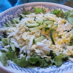 Хочу предложить вашему вниманию легкий и вкусный салат. Рецепт увидала в журнале "Школа гастронома".