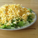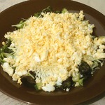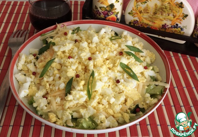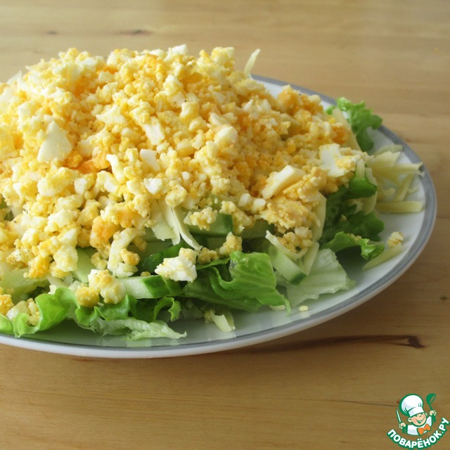 Сверху на сыр выкладываем крупно порубленные яйца.