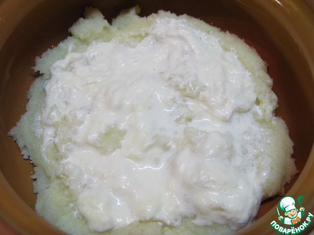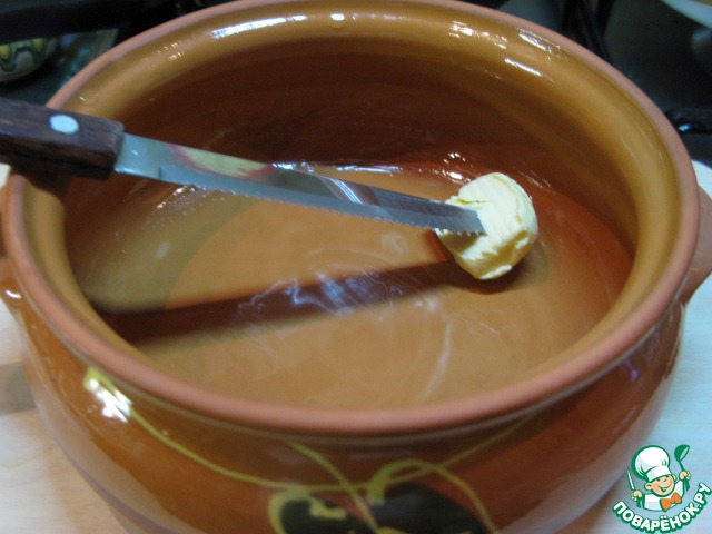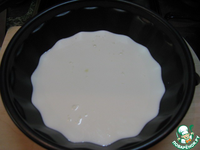 Берем сковородку или блюдо (керамическое или металлическое) и смазываем его сливочным маслом.