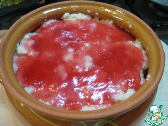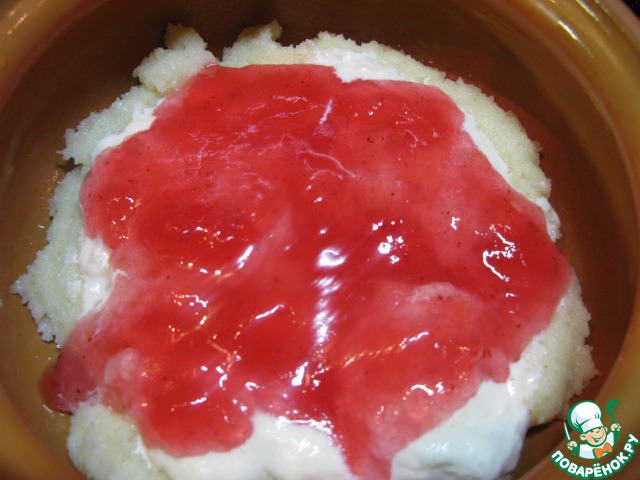 Поливаем вареньем (не всем). Я брала желе из красной смородины.