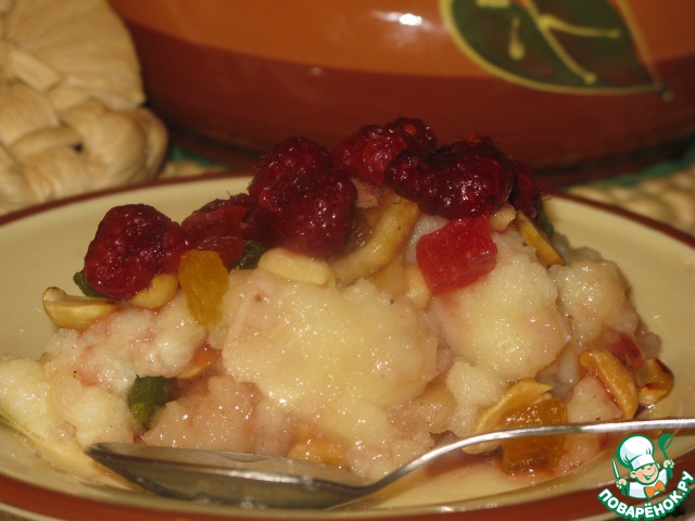 При подаче я украсила ягодами малины. Умопомрачительный десерт! Дети вообще не заметили манку.