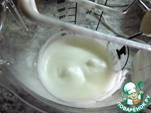 Я сначала взбила белки с солью до плотного состояния, потом понемногу засыпала сахар, продолжая взбивать. -