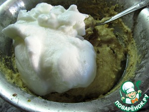 В конце добавляем взбитые белки, движениями ложки снизу-вверх аккуратно вмешиваем белки в тесто.