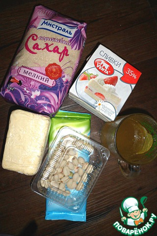 • Сливки, мед, сахар и ванилин прогреть на плите до растворения последнего. Этот шаг я, к сожалению, не сфотографировала. Затем добавить туда ореховую пасту.