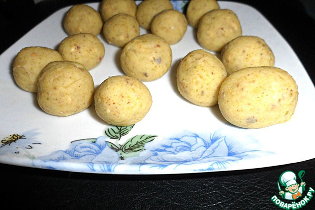 • Итак, чайной ложкой "сгребаем" немного массы и лепим шарики.