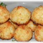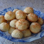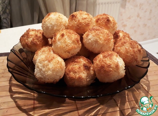 Из массы кокосовой лепим шарики и выкладываем на противень. Выпекаем при температуре 200 градусов 15 минут.