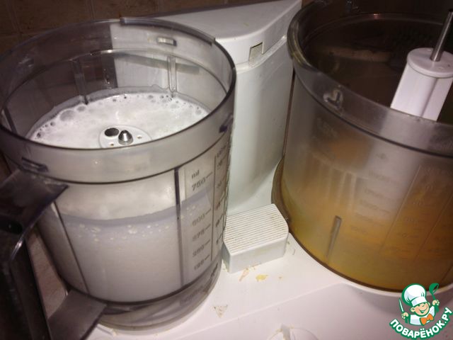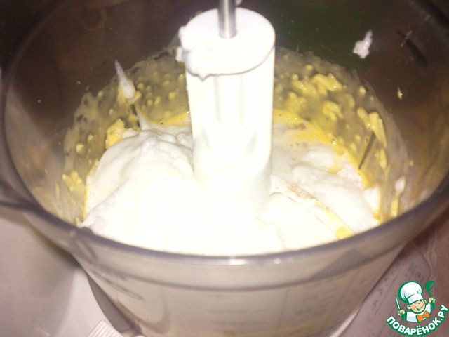 Соединить желтковую смесь с белками, хорошо перемешать.