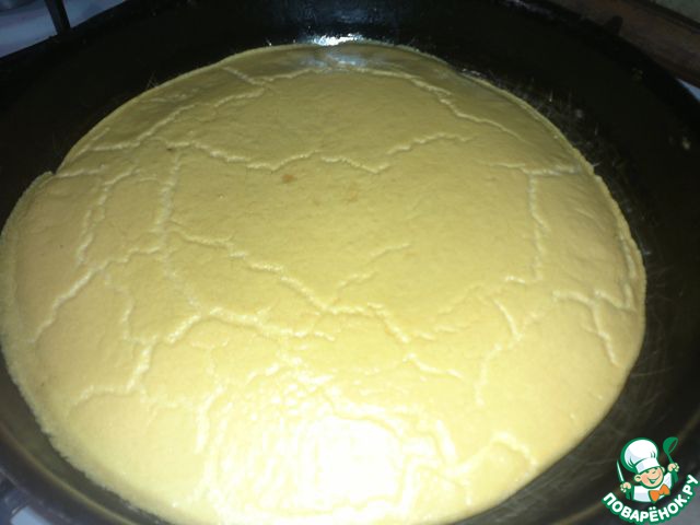 Духовку разогреть до 180 градусов, сковороду подогреть на плите, влить подготовленную массу, жарить 3-5 мин.