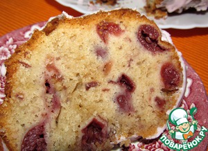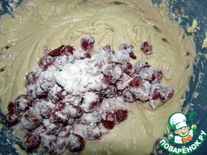 Добавляем в тесто вишню, аккуратно перемешиваем -