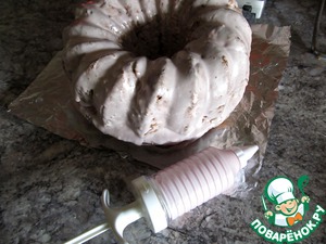 Часть глазури набираем в кондитерский шприц, остальной поливаем остывший кекс.