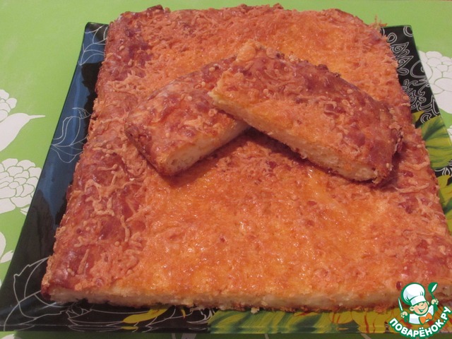 - Сыр голландский (100 г. в тесто + 100 г. на посыпку) — 200 г