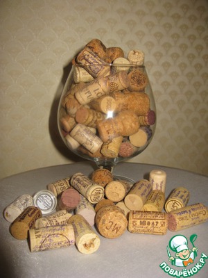 А вот наш бокал с пробками. Уже все не помещаются. Надо больше купить.
