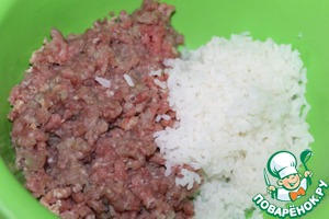 • Прокручиваем мясо и отвариваем до полуготовности рис.