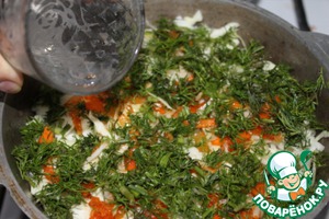 • Далее выкладываем оставшуюся часть капусты, пассеровки и зелень.