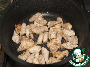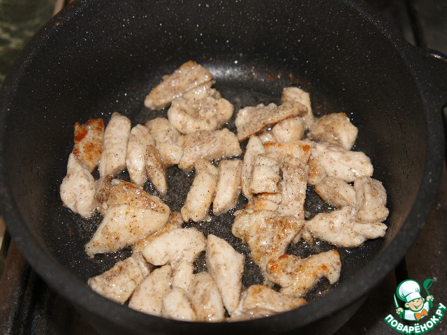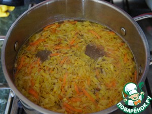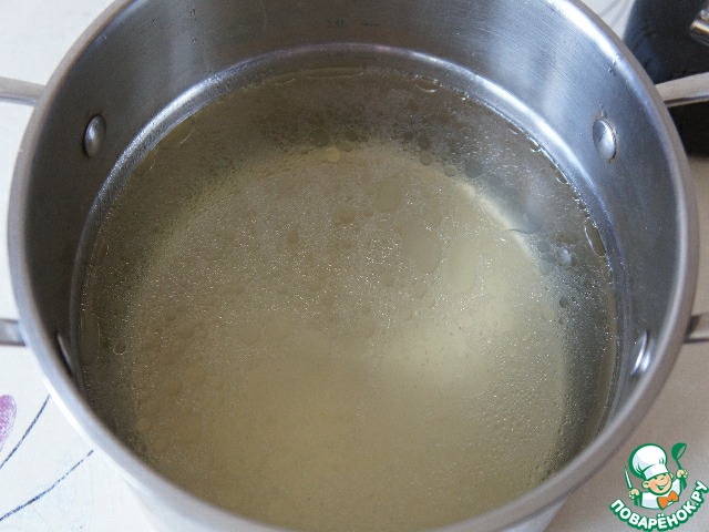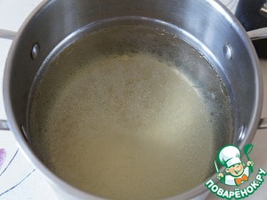 Бульон процедить. Довести до кипения 2,5 л воды или куриного бульона, опустить в него мясо и поставить вариться на слабом огне на 30 минут.