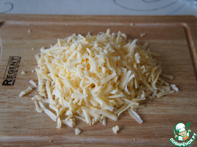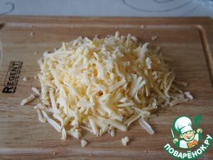 Сыр натереть на крупной терке, небольшой кусочек - на мелкой.