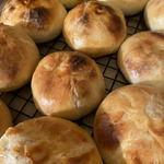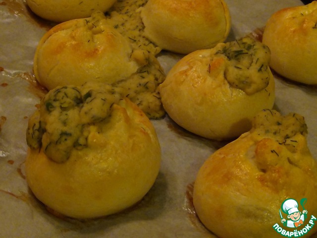 Выложить кныш на подготовленный лист выпечки так, чтобы они не касались. Взбейте яичный желток и 1 столовую ложку воды и сверху обмажьте кныши. Выпекать при температуре 190 градусов до золотистого цвета.