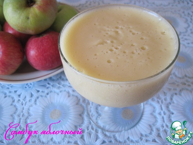"Взять два стакана печеных протертых антоновских яблок, две чашки мелкого сахару и один белок; сварить четвертку клею и положить кусочек ванили; яблоки с сахаром взбить и в оное положить сваренный клей и влить в форму. Поставить на холод. Подавать на десерт кому как нравится."