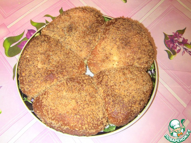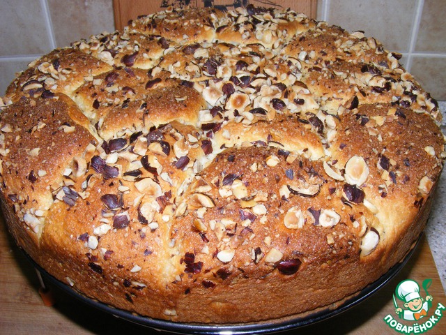 Пирожковый пирог с творожной начинкой, в штрейзеле из тростникового сахара и грецких орехов. Очень вкусно!