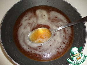 Kладем в маленькую сковородочку сахар с 1 ложкой воды и лимонным соком и ставим на небольшой огонь, когда сахар превратится в карамель - выключаем.